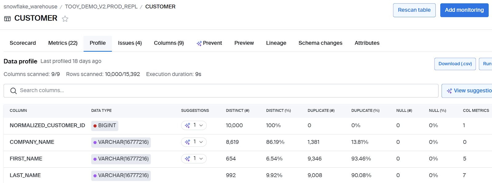 Bigeye has a large role to play in DataOps. Its features are in-line with the process to run efficiently and increase the confidence of your user community. Its functionality includes: