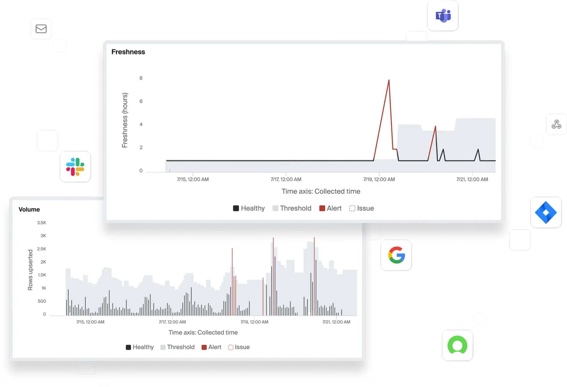 Anomaly detection and data monitoring to accelerate issue identification and resolution, ensuring data reliability and trust.