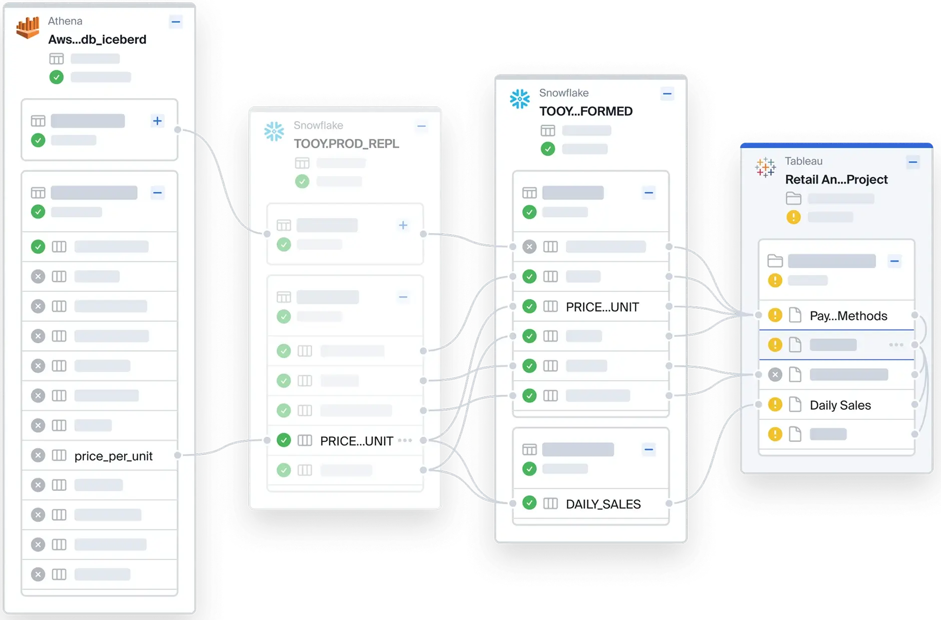 Catalog your data, trace lineage, and capture additional metadata such as tags, owners, and data domains.