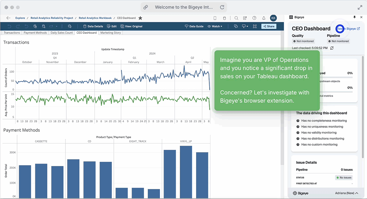 “I love Bigeye dashboards. I think they're fantastic. I think that tab summary statistics are great.”