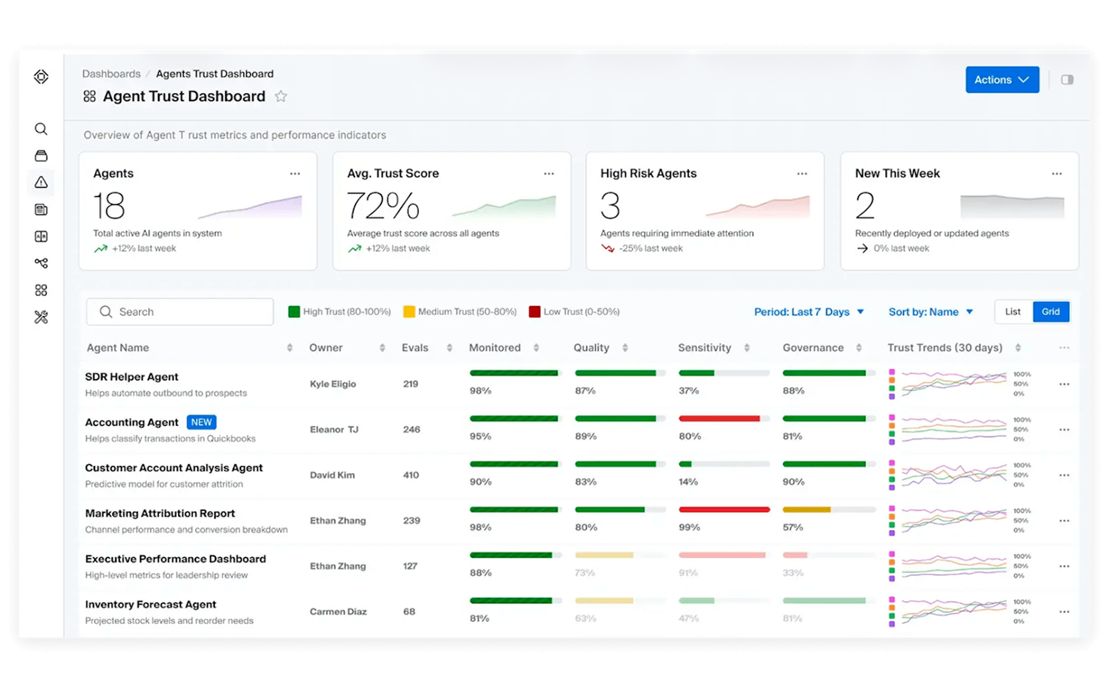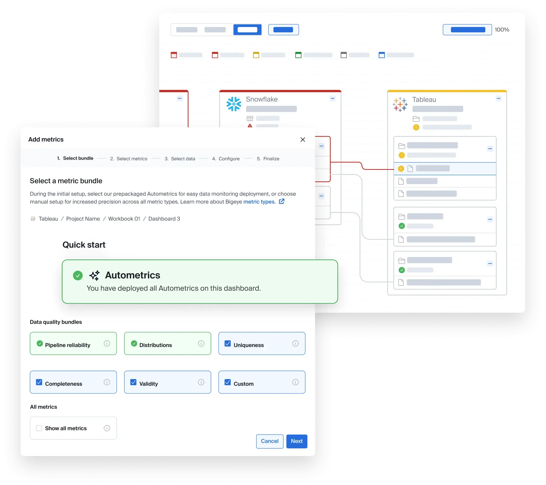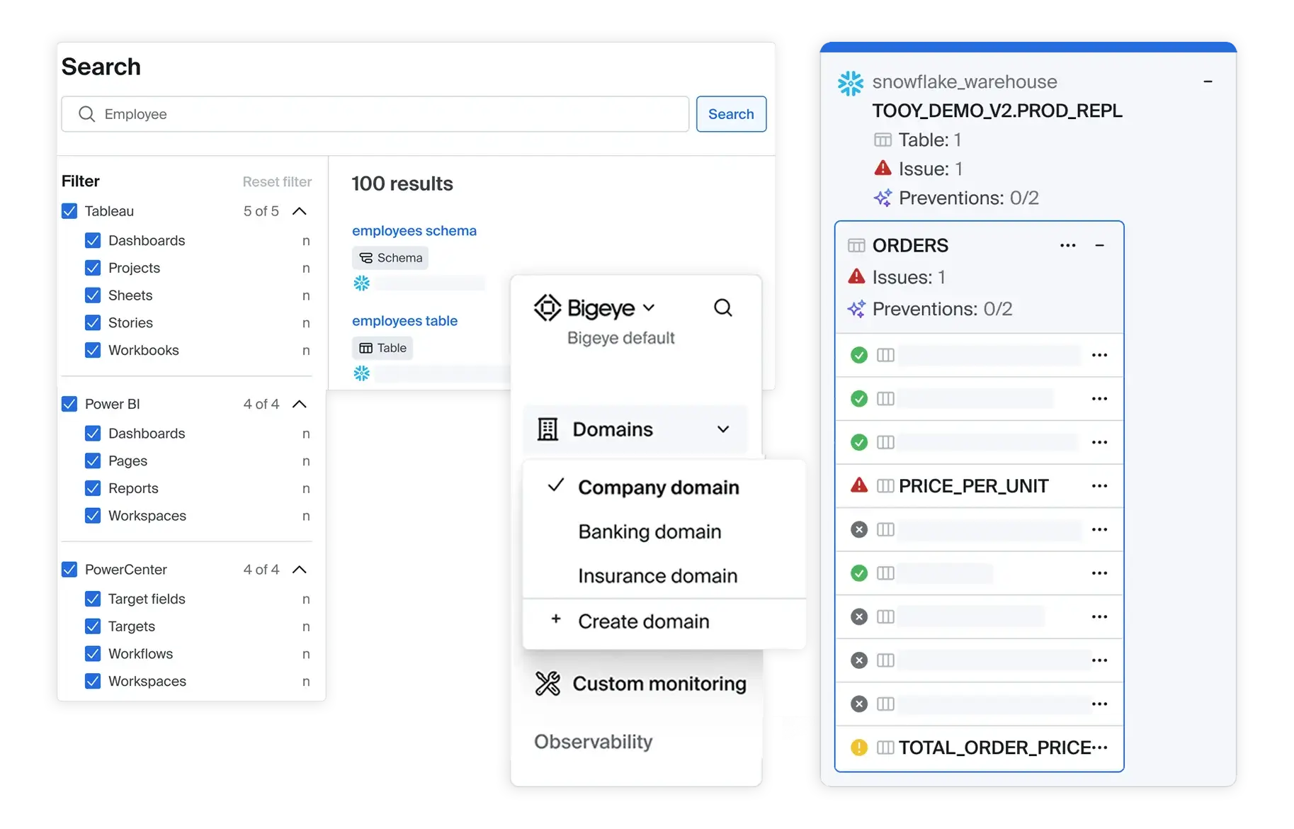 The AI Trust Platform is built on Bigeye’s lineage-enabled data observability technology and empowers organizations to improve data quality, identify sensitive data, meet data risk and policy requirements, and confidently scale AI initiatives.