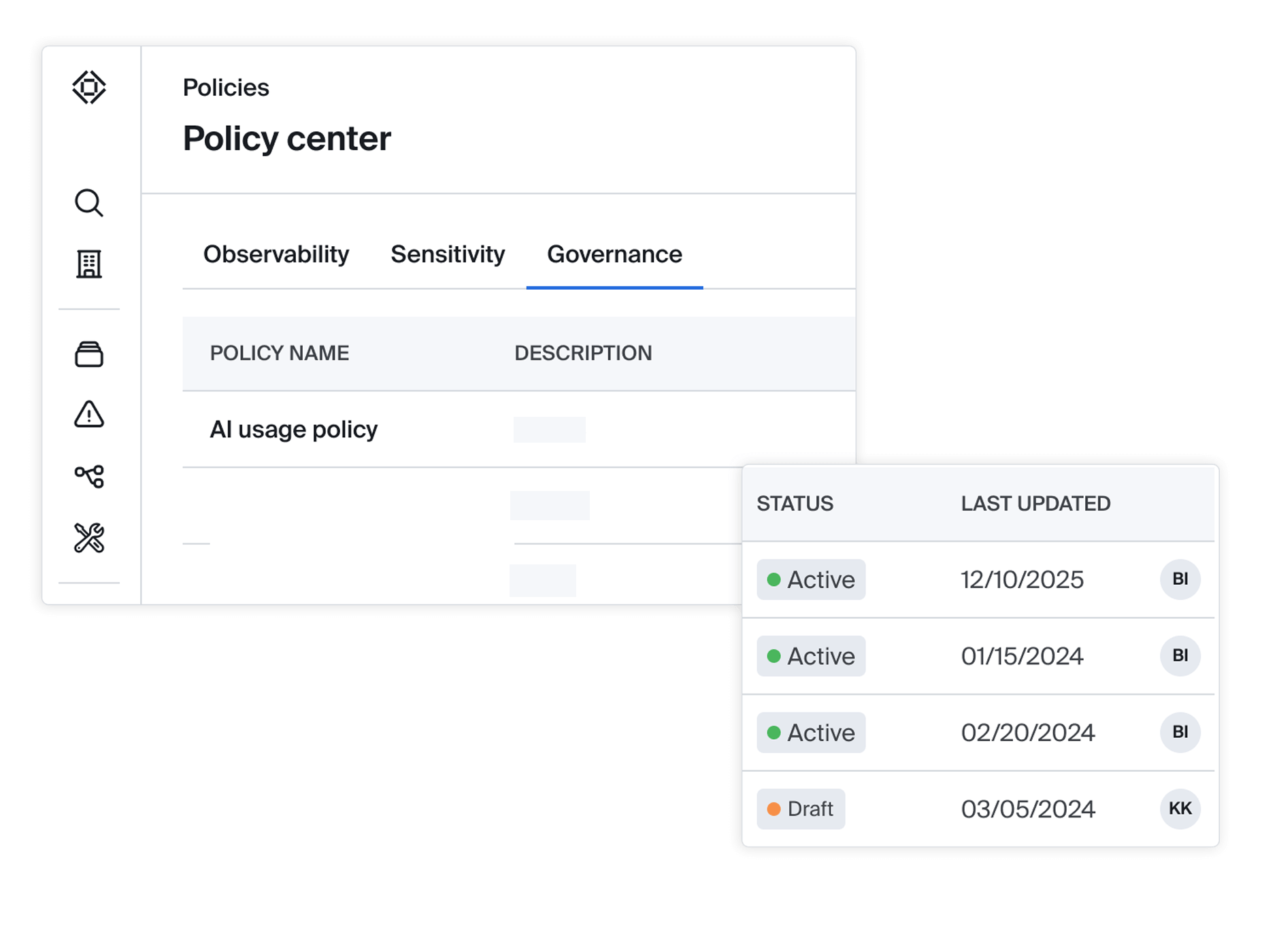 The Bigeye AI Trust platform consists of multiple modules that allow you to customize the platform to best meet your enterprise data and AI use cases. Monitor your data pipelines, manage data sensitivity and governance, and apply runtime enforcement to your AI policies — all from one integrated platform!