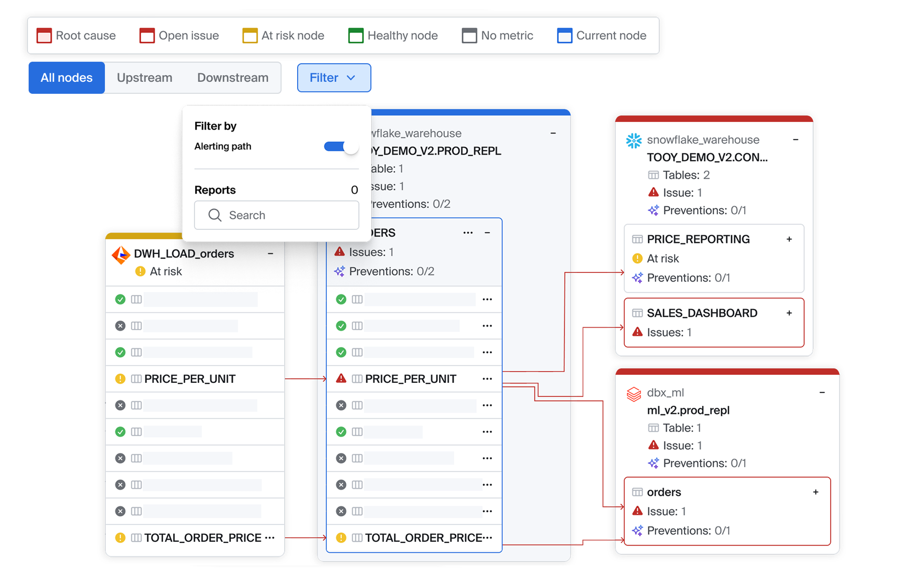 Every alert comes with lineage-aware context. Bigeye shows exactly where the issue started, how it moved through pipelines, and what dashboards or data products rely on the affected tables.