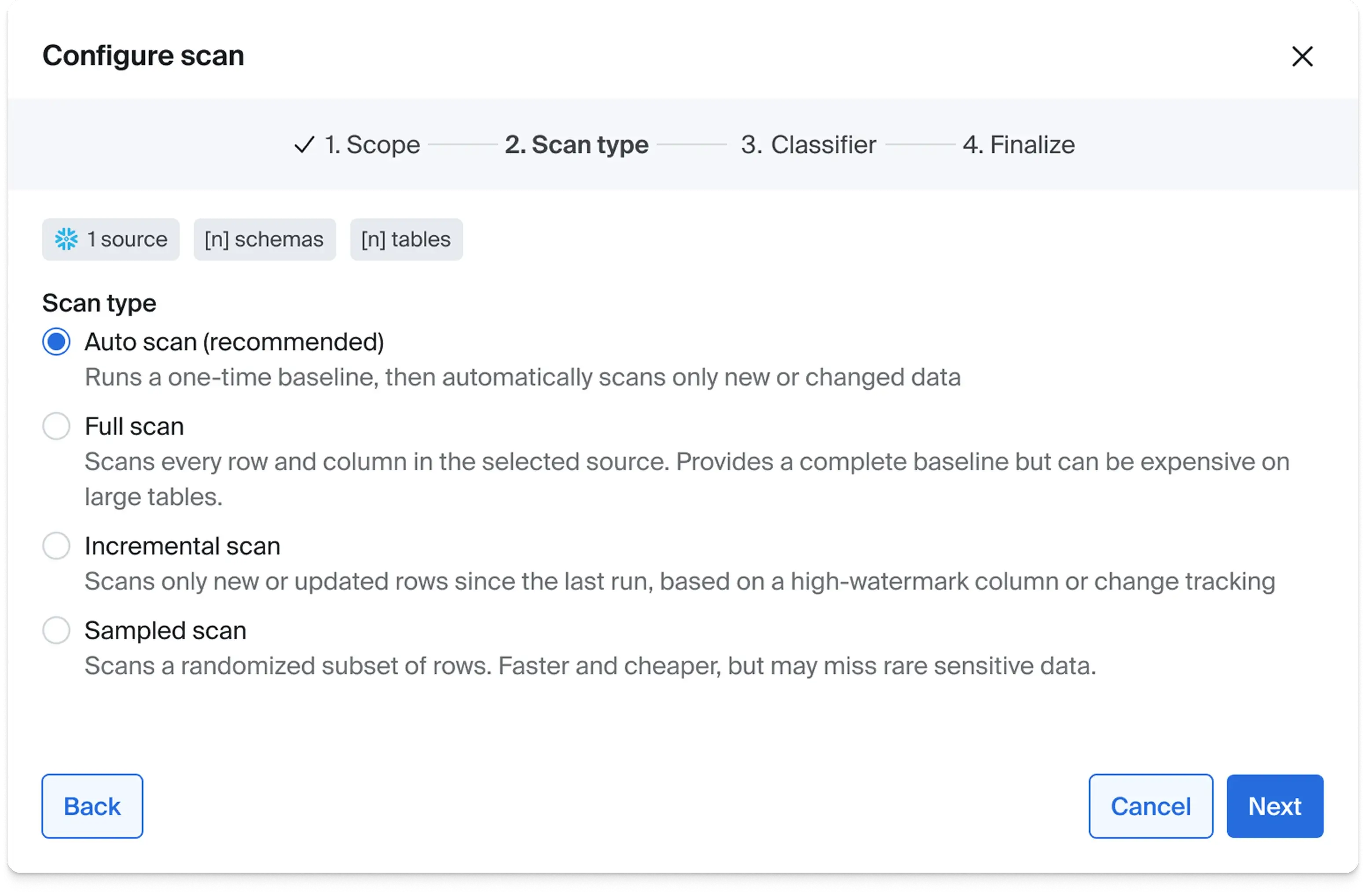 Configure classifiers and scan schedules once, then AI detection automatically discovers sensitive data with precision.